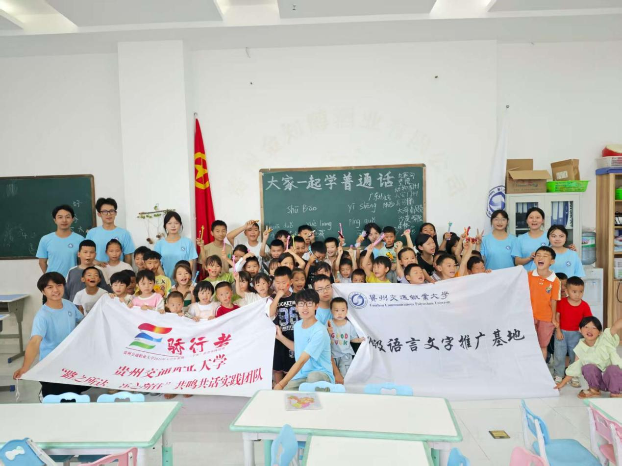 近日,贵州交通职业大学“路之所达,语之所往”语润茶乡青年志愿服务队赴湄潭县永兴镇开展为期七天的“推普助力乡村振兴”社会实践志愿服务活动。茶海景区里,推普添茶香志愿服务队走进永兴镇中国茶海景区,为中国茶海景区员工量身定制 “普通话 + 茶旅” 专题培训,同时对游客进行走访调研,探讨普通话与当地方言的差异,增进游客对语言多样性和普通话重要性的认识。 幼儿校园中,语声润童心志愿服务队走进新芽幼儿园开展“童声推普·...