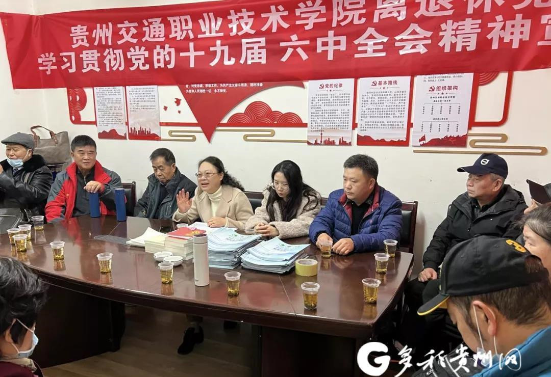 11月25日上午,贵州交通职业技术学院(以下简称贵州交通职院)离退休党支部集中学习宣传贯彻党的十九届六中全会精神,围绕《中共中央关于党的百年奋斗重大成就和历史经验的决议》进行深入学习研讨,学院党委副书记杜娟同志参加学习并做专题宣讲。