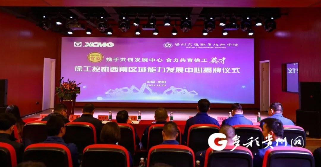 12月10日,贵州交通职业技术学院徐工挖机校企合作实训基地暨2021年徐工挖机西南区域能力发展中心在清镇校区正式揭牌。学院院长吴有富、副院长田兴强,徐工挖机副总经理、营销公司总经理张丰亭、徐工挖机营销公司同盟军商学院院长黄世顶等相关负责人参加揭牌仪式。