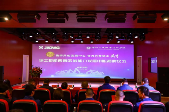 12月10日,贵州交通职业技术学院徐工挖机校企合作实训基地暨2021年徐工挖机西南区域能力发展中心在学院清镇校区正式揭牌。学院院长吴有富、副院长田兴强,徐工挖机副总经理、营销公司总经理张丰亭,徐工挖机营销公司同盟军商学院院长黄世顶、西南营销中心总监助理史纪涛、西南营销中心服务大区总监滕义来,贵州恒达鑫机械有限公司总经理梁纶恒,机械电子工程系相关负责人等参加揭牌仪式。 吴有富代表学院欢迎徐工挖机相关负责...