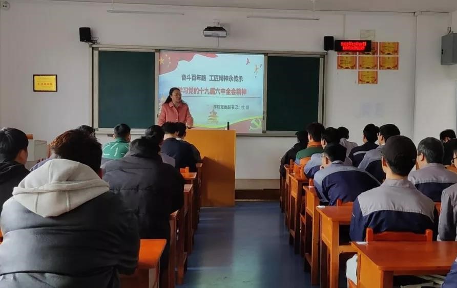 2021年12月7日,学院党委副书记杜娟为机电学子讲授了一堂题为《奋斗百年路 工匠精神永传承——学习党的十九届六中全会精神》的专题思政课。 杜娟向同学们介绍了党的十九届六中全会召开的背景、时间、经过等概况,结合2020级学生即将迎来实习、就业等同学们关心的身边事、实事、急事,鼓励同学们要加强对党的十九届六中全会精神的学习,深刻认识“两个确立”的决定性意义,增强“四个意识”、坚定“四个自信”、做到“两个维护”...
