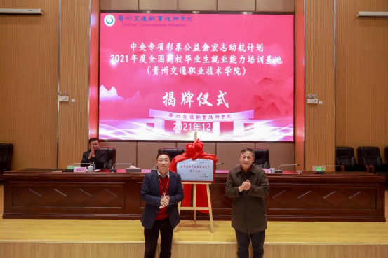 2021年12月6日,“中央专项彩票公益金宏志助航计划”全国高校毕业生就业能力培训基地揭牌暨开班仪式在贵州交通职业技术学院报告厅举行。 贵州省教育厅就业办主任张华,学院院长吴有富、副院长詹黔江,招生就业指导中心主任肖志红、副主任陈智,各系党总支书记和参训学生参加了本次活动,揭牌仪式由招生就业指导中心主任肖志红主持。仪式上,张华、吴有富共同为全国高校毕业生就业能力培训贵州交通职业技术学院基地揭牌。 詹黔江...