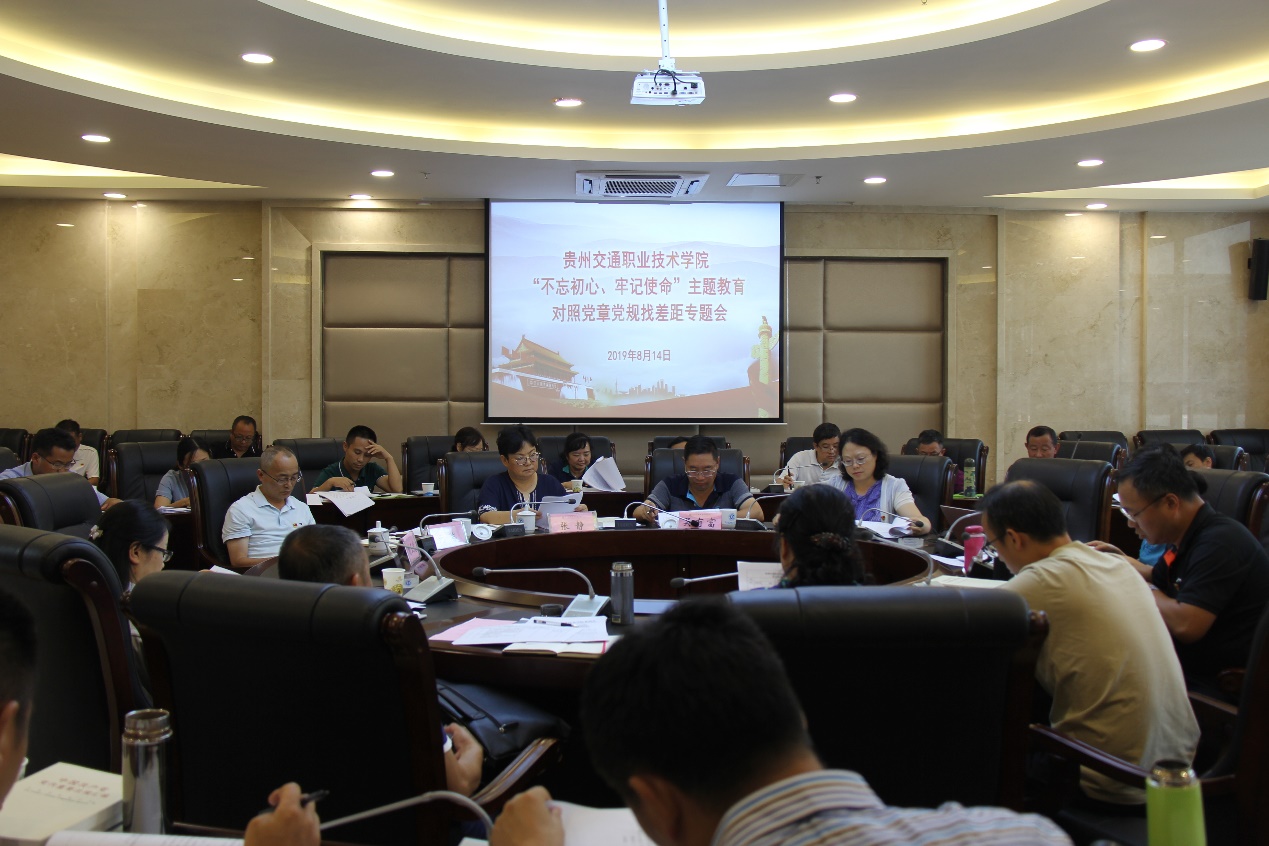 根据中央、省委和省交通运输厅党委关于“不忘初心、牢记使命”主题教育部署安排,8月14日,学院“不忘初心、牢记使命”主题教育对照党章党规找差距专题会议在清镇校区召开。会议由学院党委书记张静主持。 会议传达学...