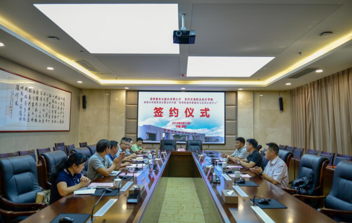 8月15日,我院与高等教育出版社(以下简称“高教社”)校社合作协议暨“智慧职教资源建设与应用示范中心”签约揭牌仪式在清镇校区图文信息楼A-213会议室举行。学院党委副书记、院长吴有富、副院长刘正发、高教社高职...