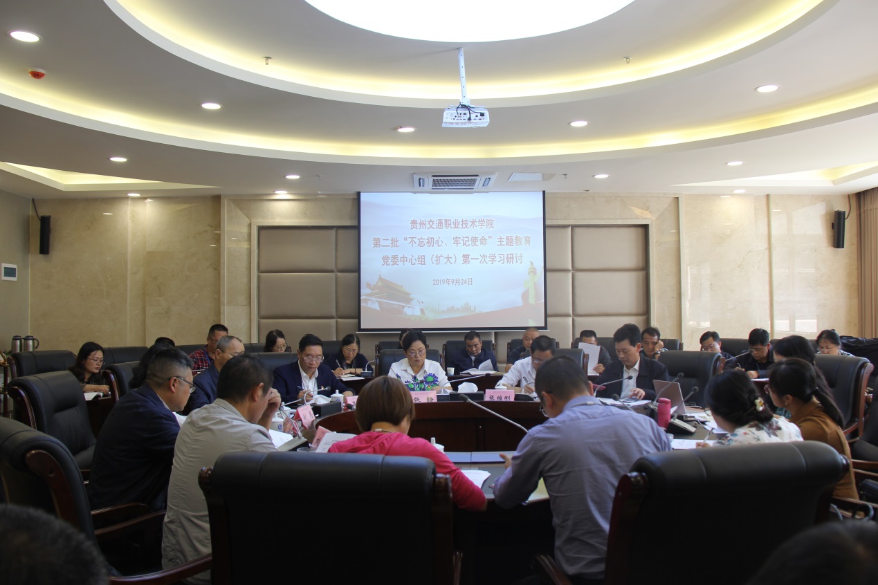 9月24日,贵州交通职业技术学院第二批“不忘初心、牢记使命”主题教育党委中心组(扩大)第一次学习研讨会在清镇校区举行。