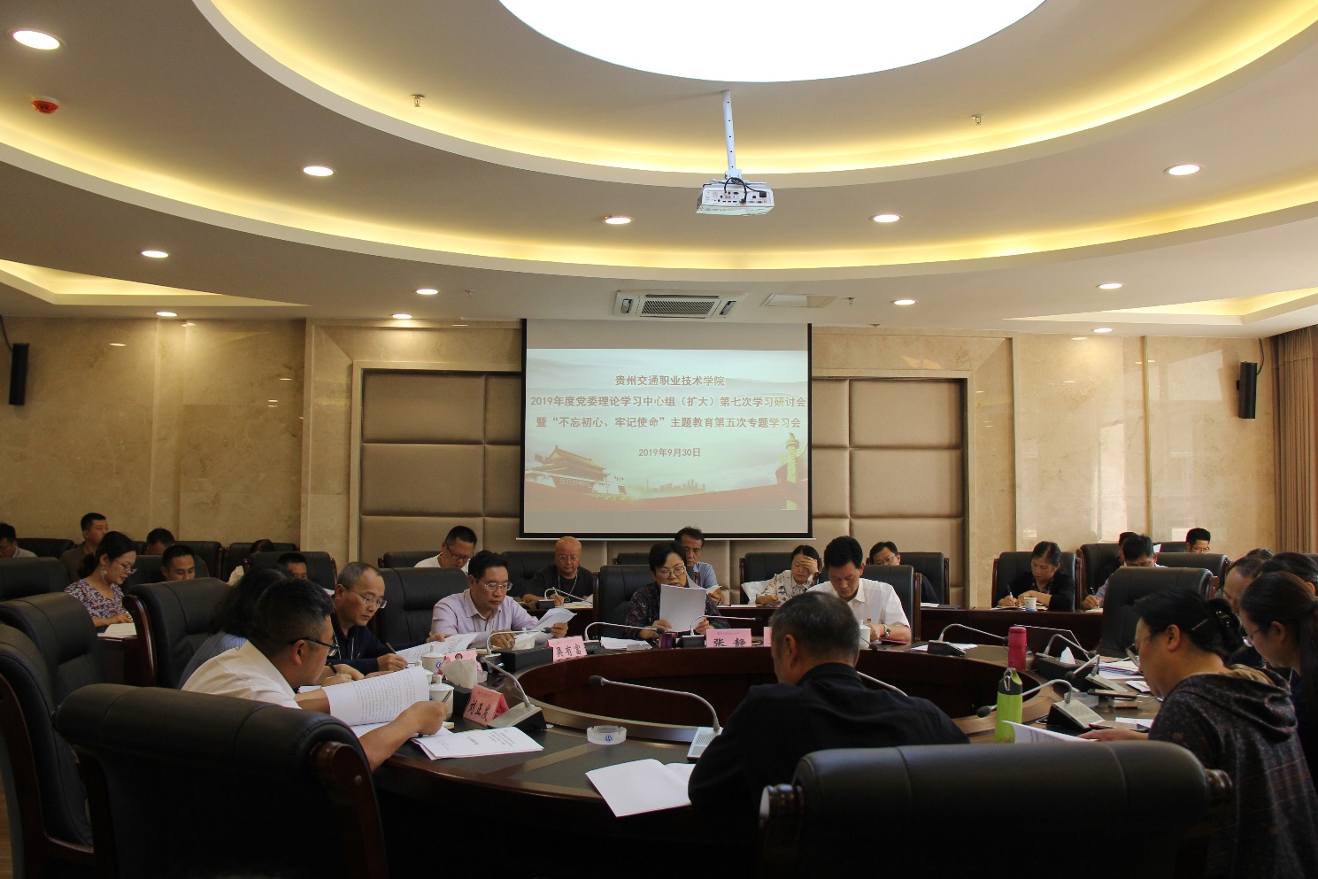 9月30日,贵州交通职业技术学院2019年度党委理论学习中心组(扩大)第七次学习研讨会暨“不忘初心、牢记使命”主题教育第五次专题学习会在清镇校区举行。