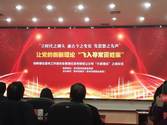1月24日下午,由贵州日报报业集团举办的“创新理论宣传工作座谈会暨公众号‘大家理论’上线仪式”在贵阳举行,省委宣传部常务副部长徐静出席并讲话。我院成为贵州日报理论宣传首批顾问和智库单位。 据悉,“大家理论...