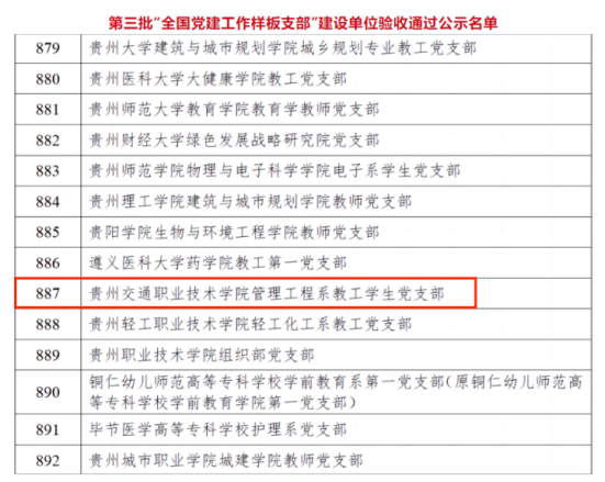 近日,教育部发布《关于第三批新时代高校党建示范创建和质量创优工作和第二批高校“双带头人”教师党支部书记工作室建设单位验收结果的公示》,我校管理工程系教工学生党支部顺利通过验收。 来 源:管理工程系编 辑:陈 磊一 审:安 军二 审:金 文三 审:李晓艳