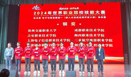 10月28日-31日,2024年世界职业院校技能大赛总决赛争夺赛高职组电子与信息赛道一“嵌入式系统应用开发”赛项在湖北工程职业学院举行,我校信息工程系学生在大赛中获得铜奖。比赛重点考查选手在嵌入式系统软硬件开发、系统集成和场景综合应用等方面的综合技能意识和实践动手能力以及选手的职业道德、工作态度、团队合作等综合素养。来自全国31个省、自治区、直辖市的61支代表队,200余名选手同台竞技。信息工程系参赛学生吴谋楠、李琦、...