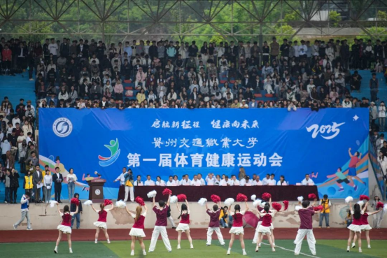 启航新征程,健康向未来。5月15日上午,贵州交通职业大学第一届体育健康运动会正式开幕。学院党委副书记刘正发、副院长田兴强、纪委书记张启建、副院长詹黔江出席开幕式。 入场仪式上,国旗队、校旗队、会旗队、会徽队、标语队、表演方队、教职工代表队、裁判员代表队、新征连学生代表队、国际教育部留学生代表队、各系部代表队迈着整齐的步伐、喊着响亮的口号依次入场。开幕式在庄严的升旗仪式中拉开帷幕。 副院长詹黔江致辞,他表示,...