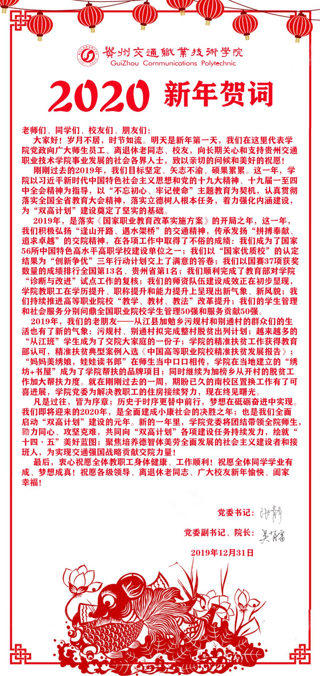 2019年马上就要跟我们道别了回望来时路作为交院人的你有什么感悟呢?这一年我们真的很拼所以才有了那么多的荣誉这一年我们真的很苦所以才有了那么多的掌声今天官微君用“七个新”为各位带来一份不一样的“贵州交通职业技术学院年度总结”学院党建更上新台阶2019年,学院以习近平新时代中国特色社会主义思想和党的十九大精神为指导,以“不忘初心、牢记使命”主题教育为契机,不断推动党的建设更上一个新台阶,以党建促进各项...
