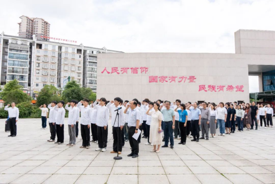 为热烈庆祝中国共产党成立104周年,进一步强化新党员的党性观念和责任意识,引导新党员牢记初心使命、坚定理想信念,7月1日,贵州交通职业大学在社会主义核心价值观广场举行2025年新党员入党宣誓仪式。学校党委副书记、校长刘雁同志出席,各二级学院党委副书记、各专职组织员、2025年新发展党员参加仪式。入党宣誓仪式由学校党委副书记王昌林主持。 学校领导为新党员代表佩戴党员徽章,在刘雁同志的领誓下,全体新党员面向党旗前庄严宣誓,...