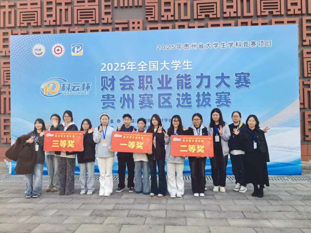 近日,2025年“科云杯”财会职业能力大赛贵州省选拔赛在贵州财经大学举行,来自全省本、高职院校的四十多支队伍同场竞技,我校选派的三支队伍表现优异,一举包囊一、二、三等奖,实现全员获奖。该赛事已被纳入全国普通高校大学生竞赛目录。本届省赛以“业财税信息处理+智能化财务应用”为主线,赛程共300分钟,分上下半场:上半场模拟企业日常业务流程,考验税务处理与财务核算能力;下半场聚焦智能财务工具的应用,考察大数据分析与财务决策水平。...