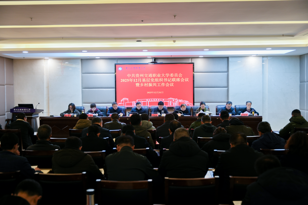 近日,学校召开2025年12月基层党组织书记联席会议暨乡村振兴工作会议,总结2025年学校乡村振兴工作成效,研究部署2026年乡村振兴帮扶工作。全体在家校领导出席会议。会上传达学习了习近平总书记关于乡村振兴工作的重要论述和《贵州省乡村全面振兴规划(2025—2027年)》,通报了《贵州交通职业大学推进乡村振兴帮扶工作计划(2026-2027年)》。校党委书记何兴发在会上强调,乡村振兴是践行“两个维护”的政治使命,是职业教育赋能乡村振兴的责任担当,...