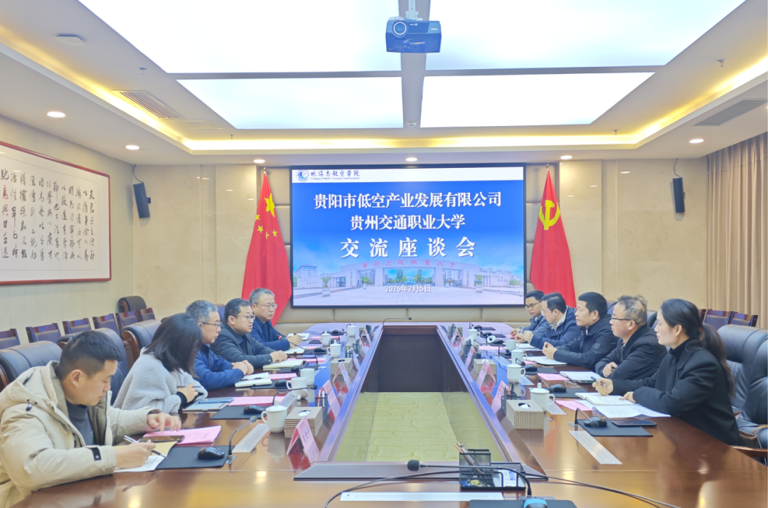 2月5日上午,贵阳市低空产业发展有限公司总经理孔旭兵一行到水运与航空学院开展交流座谈。校党委常委、副校长詹黔江出席会议。会上,詹黔江对孔旭兵一行的到来表示诚挚欢迎,并简要介绍了学校和水运与航空学院的基本情况和办学特色,希望双方在人才培养、产教融合等方面深化合作,共同为助力区域经济发展做出更大贡献。孔旭兵介绍了贵阳市低空产业发展有限公司的基本情况,并详细介绍当前贵阳贵安推进低空经济的“四主体、五聚焦、六个一”...