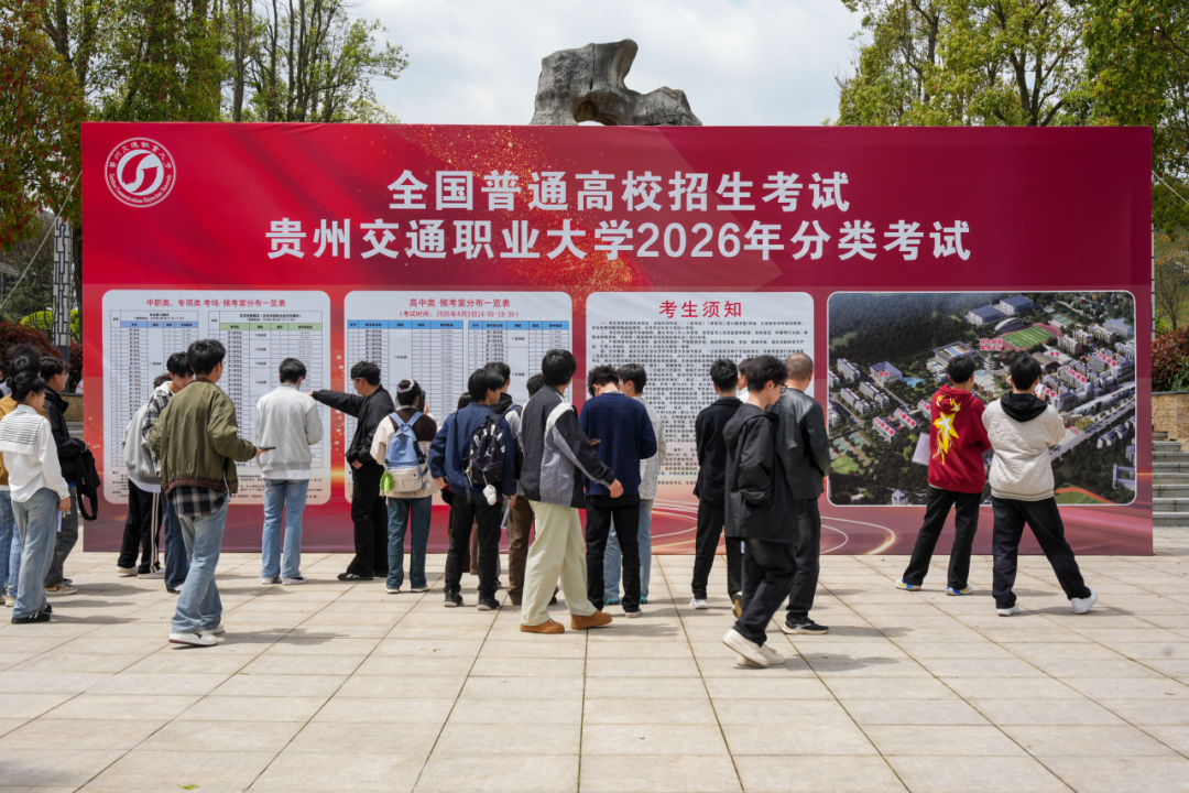 4月2日至3日,贵州交通职业大学举行2026年分类招生考试,3000余名普通高中毕业生、中职毕业生及“专项类”人员(退役军人、农民工、高素质农民、企业员工、下岗失业人员、基层农技人员)参与了1813个录取名额的竞争。本次分类招生考试普通高中毕业生采用“文化素质+职业技能适应性测试”的评价方式,中职毕业生采用“文化综合考试+职业技能测试”的评价方式,“专项类”考试采用“职业技能适应性测试”的评价方式,旨在选拔一批综合素质高,...