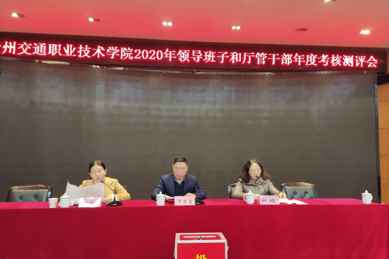 1月7日,学院在阳关校区召开2020年领导班子和厅管干部年度考核测评大会。省交通运输厅考核组组长、人事教育处副处长、二级调研员田维琼同志一行莅临学院开展考核工作,在家的院领导班子成员出席考核测评大会,会议由党委副书记杜娟同志主持。根据会议议程,田维琼同志作考核测评动员讲话,对考核工作提出具体要求。学院党委副书记、院长吴有富同志代表党委作班子述职述廉报告。党委副书记杜娟同志作学院2020年干部选拔任用工作...