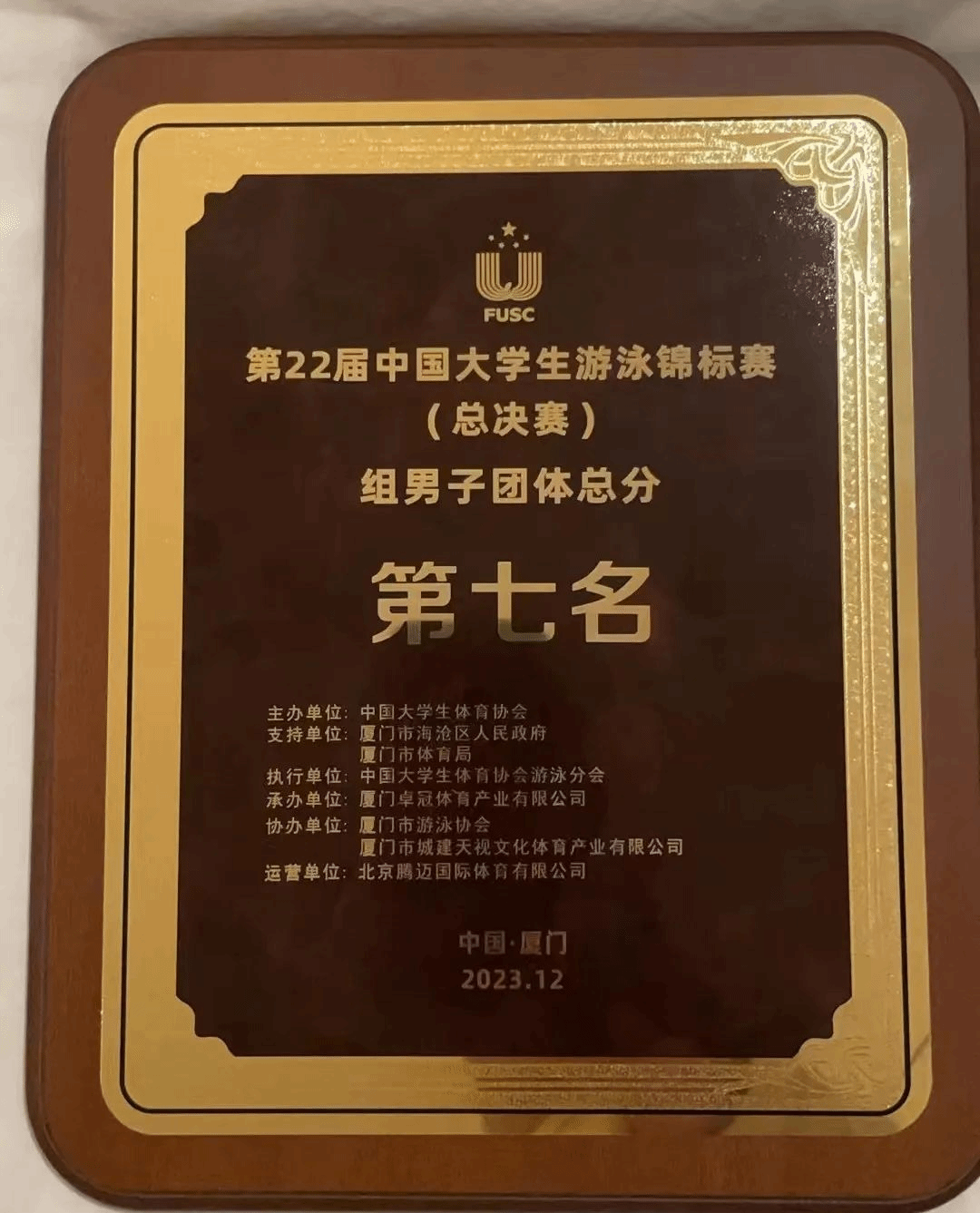 据了解,本次比赛是2023年度全国高校大学生游泳比赛最高级别赛事,其对于检验各高校游泳运动员训练水平,为国家挑选、储备优秀游泳人才具有重要意义。我院代表队以他们出色的游泳技巧和勇往直前的毅力,为个人和学院赢得了荣誉,充分展现了我院学生卓越的专业实力、顽强拼搏的体育精神、凝聚共生的团队协作力。