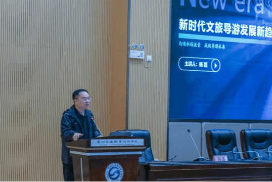 杨磊从新时代文旅导游发展的新趋势提出自己独特的见解。以当前旅游发展的思路及创新出发为视角,重点为同学们讲述了旅游业出现的“八新”:旅游业的新特点、旅游者的新名词、旅游业的新趋势,旅行社的新现状,导游员的新认知,导游员的新内核,导游员的新创业,导游员的新赛道。他从“短视频”“泛研学”“康养游”等多方面阐述了未来旅游专业同学的就业方向,讲解生动丰富、深入浅出。