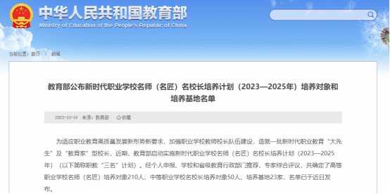 据悉,该计划旨在培养打造一批理想信念坚定、师德高尚、教育教学能力和专业实践能力突出的双师型名师(名匠),通过搭建国家级名师、名匠技艺技能传承创新平台,发挥名师(名匠)示范引领作用,带动职业教育教师能力素质整体提升。
