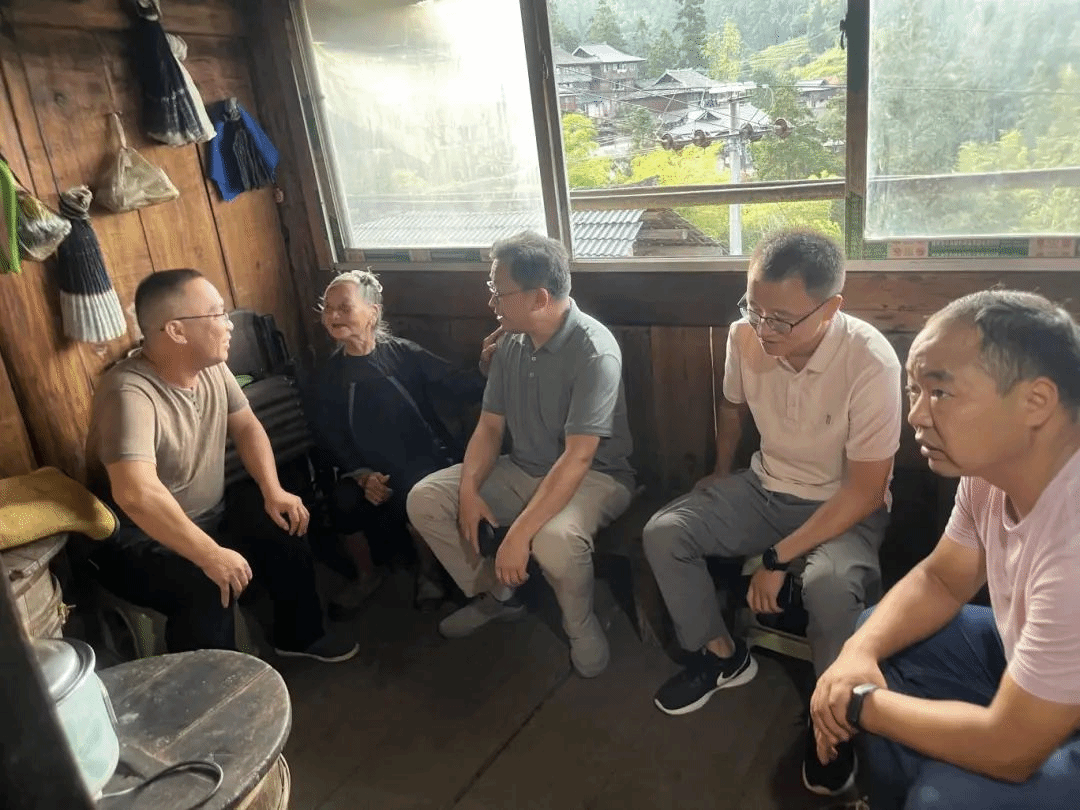 9月24日下午,詹黔江一行来到丙妹镇岜沙村,听取学院派驻岜沙村第一书记田茂林同志的近期工作汇报,与工作队和村两委同志亲切交谈,详细了解今年岜沙村旅游产业发展情况和巩固脱贫成果情况。詹黔江指出,驻村第一书记和村两委同志要认真做好防返贫动态监测和帮扶工作,认真研判,应纳尽纳,应帮尽帮。要紧盯“三保障”及饮水安全保障水平和服务能力提升。要持续推进农村人居环境整治提升,建设美丽岜沙。随后,詹黔江一行来到帮扶户家中,慰问帮扶的老人,并与老人亲切交谈,了解老人生活状况和存在困难,商议下一步帮扶计划。