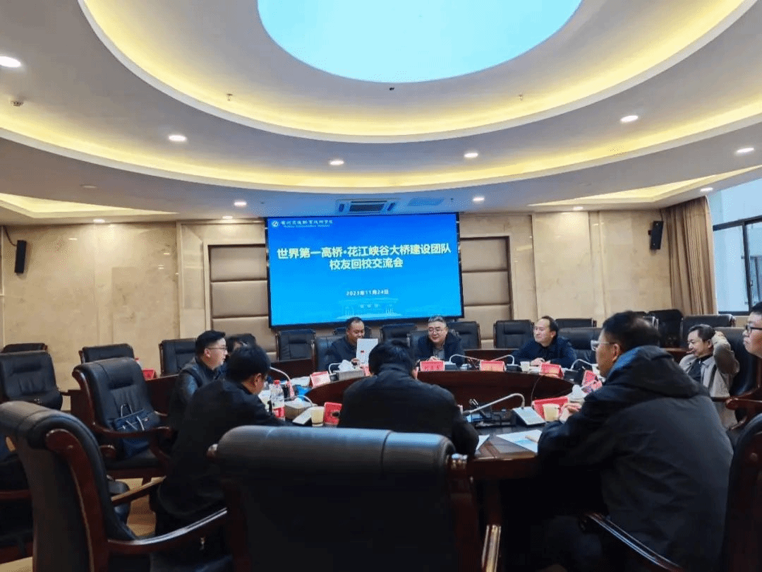 在交流座谈会上,刘正发代表学院对校友的到来表示热烈欢迎,并表示,校友在行业内的杰出贡献,是我们不断发展的动力,也是支撑学院迈向“高原峡谷高桥技术之塔”的不竭动力源泉。校友们围绕贵州高桥建造技术试验室建设、助力学院的高质量发展等进行交流发言,并表示将继续加强和母校的交流联系,支持学院的发展,为母校的发展添砖加瓦、贡献力量。