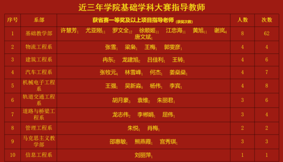 近三年学院基础学科类大赛获省赛一等奖及以上项目指导老师