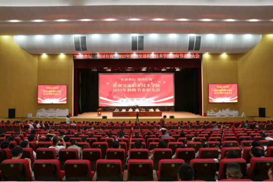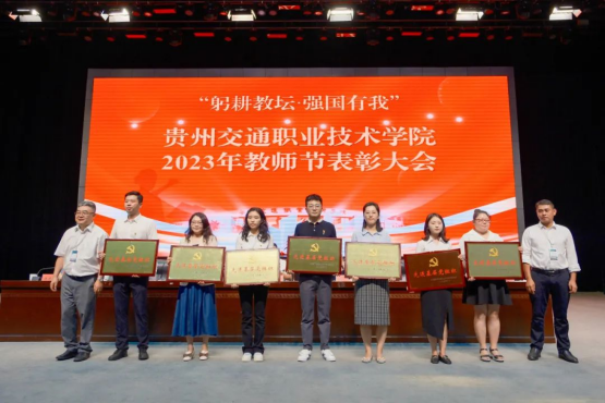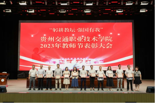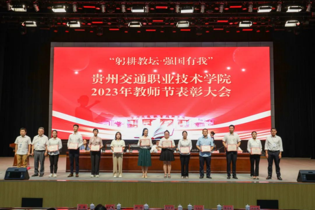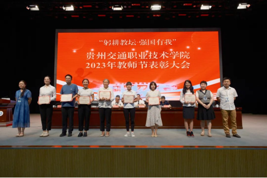 在第39个教师节来临之际,9月8日下午,学院在清镇校区大礼堂召开2023年教师节表彰大会。对2021-2023年度先进基层党组织、优秀共产党员、优秀党务工作者、学院2023年度师德师风优秀个人进行表彰,通报第二批“全国高校黄大年式教师团队”、国家级教师教学创新团队、2020—2023年省部级教学、科研、优秀人才名单、科技厅科技创新人才团队、教育厅高等学校科技创新团队、交通运输部2022年度交通运输青年科技英才,通报近三年学院专业技能类、创新技能类、基础学科类、教师大赛获省赛一等奖及以上项目的指导老师及参赛教师,以及近三年学院教师参赛、指导比赛情况。表彰大会由学院党委副书记杜娟主持,学院领导吴有富、刘正发、田兴强、张启建、吴薇、饶晓微出席,学院全体教师参加表彰大会。
