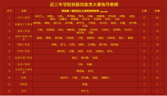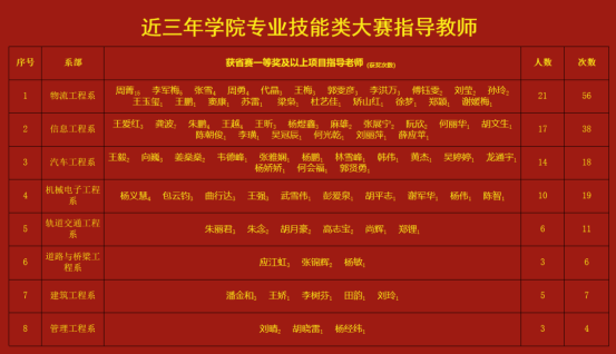 近三年学院专业类技能大赛获省赛一等奖及以上项目指导老师