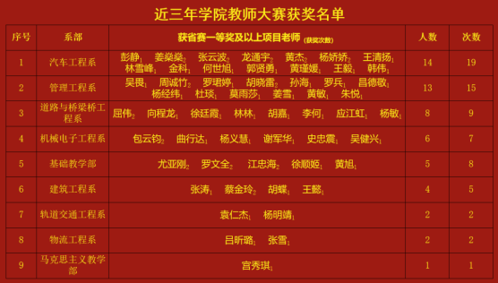 近三年学院教师大赛获省赛一等奖及以上项目老师