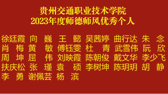 星海横流,岁月成碑。教育是一条漫长又纯真的道路,在这条路上我们坚定前行。伟大时代呼唤伟大精神,崇高事业需要榜样引领。让我们紧密团结在以习近平同志为核心的党中央周围,承前启后,继往开来,守育人初心,做合格教师,共同擘画贵州交职院新画卷。