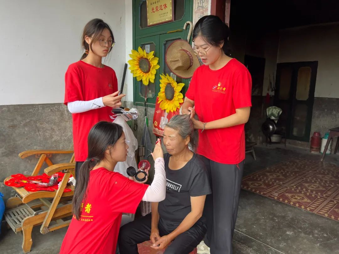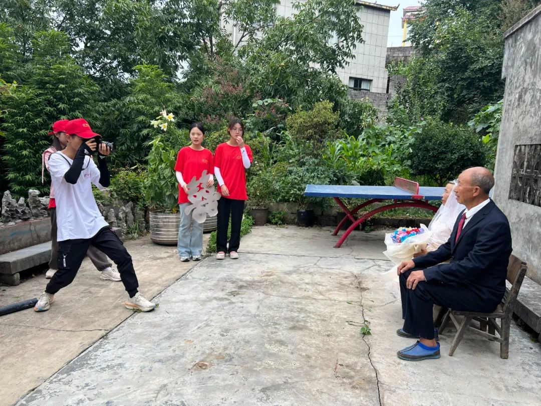 在七舍镇马格闹村,志愿者们不仅义务为村里做墙绘,还主动为村里的老人们拍最美婚纱照,以浪漫之名弥补老人们年轻时的遗憾。在退休教师张西国的家中,志愿者们为他的老伴化好妆,穿上婚纱,拍下了他们金婚之年的最美婚纱照,这张照片对张西国来说,特别有纪念意义。