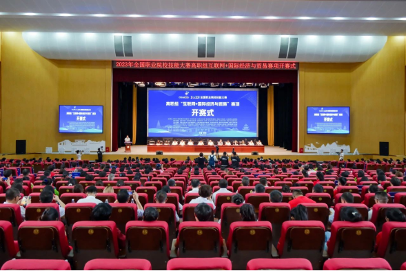 7月23日,2023年全国职业院校技能大赛(高职组)互联网+国际经济与贸易赛项开赛式在贵州交通职业技术学院成功举行,65支队伍将在接下来的两天时间里同台竞技,参与外贸B2B、外贸履约、外贸B2C等三个模块的角逐。