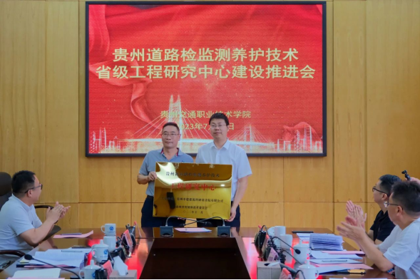 7月14日,贵州省道路检监测养护技术工程研究中心(以下简称“工程研究中心”)授牌仪式暨建设推进会在学院清镇校区成功举行,学院科研处处长张玉杰宣读工程研究中心成立文件,工程研究中心主任、学院院长吴有富致辞并向各联建单位授牌。授牌仪式由学院副院长吴薇主持。