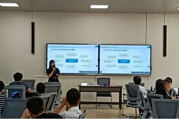 教务处副处长杨倩、物流系专任教师谢媛梅向青年教师介绍如何打造“以学生为中心”的课堂,引导教师不断探索“三明治”教学方法融入课堂的教学理念,努力打造高效课堂教学。