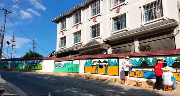 学院“绘多彩文化,建和美乡村”文化振兴志愿服务队的师生用汗水和智慧绘就了一幅幅活泼有力、生动形象、色彩亮丽的文字图案组成的文化墙,真正让墙面成为了“会说话”的文明“代言人”和“传播者”,让“文化墙”真正成为受群众欢迎的政策明白墙、美德教育墙、文明新风墙,以村民喜闻乐见、通俗易懂的形式,让农村环境整治、文明新风倡导、法治教育普及等宣传内容接地气、易接受。