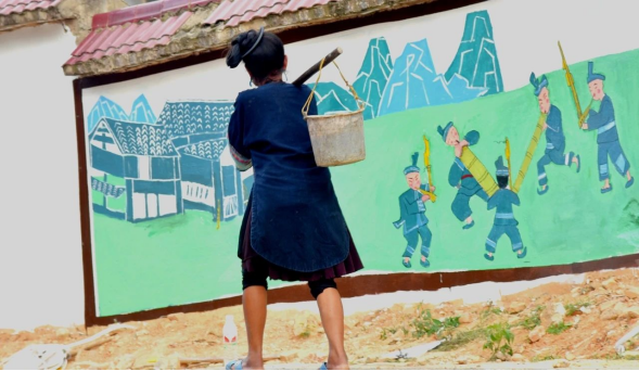 走在村寨的道路上,曾经“灰头土脸”的水泥墙,换上了彩色的新装,摇身一变成了乡村新晋打卡地。这些丰富多彩的墙绘不仅美化了农村人居环境,更丰富了群众的精神内涵。