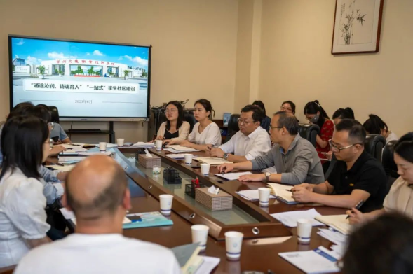 会上,徐鋆晟介绍了学院“一站式”学生社区建设推进情况。学生处龙璨婷老师从党建引领、队伍入驻、学生参与、条件保障四个方面分享了“一站式”学生社区建设成效。参会人员就学院“一站式”学生社区建设存在的问题和需要关注的重点事项进行了充分交流和认真研讨,希望注重特色凝练,加大宣传力度,多部门联动深入推进学院“一站式”学生社区建设。