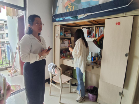 6月16日,学院党委委员、组织人事处处长饶晓微与管理系教师深入学生寝室开展“安全生产月暨一亮三进三谈”活动,与学生交流谈心,共话成长。