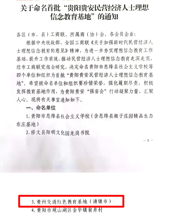 6月14日,首批贵阳贵安民营经济人士理想信念教育基地授牌仪式在息烽县委党校举行,我院贵州交通红色教育基地获“首批贵阳贵安民营经济人士理想信念教育基地”授牌,这是该基地继2021年10月获“贵阳市爱国主义教育基地”授牌后的又一项殊荣。