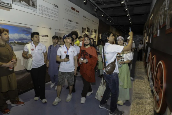 首先,来华留学生们来到了设立于我院的“贵州交通博物馆”。伴随着讲解老师的介绍,来华留学生们开启了一段跨越千年的贵州交通之旅。李白的“夜郎万里道,西上令人老”体现了贵州交通之难。然而贵州交通人“开山劈岭,筑梦通途”,让贵州在交通上创造了无数个“贵州第一”。在这一站,来华留学生了解了交通知识,接触了交通文化,认识了交通精神。