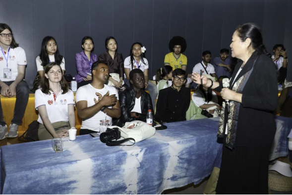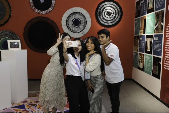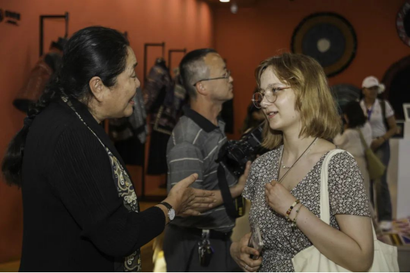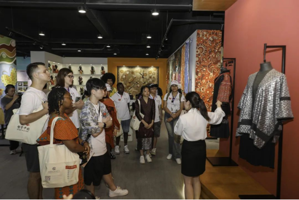 随后,来华留学生们去到了文化千岛艺术馆。通过对银艺、木艺、绣艺、染艺等领域专家学者、非遗传承人及学生作品的参观和学习,留学生们感受了贵州丰富的少数民族技艺与文化。