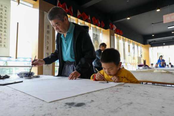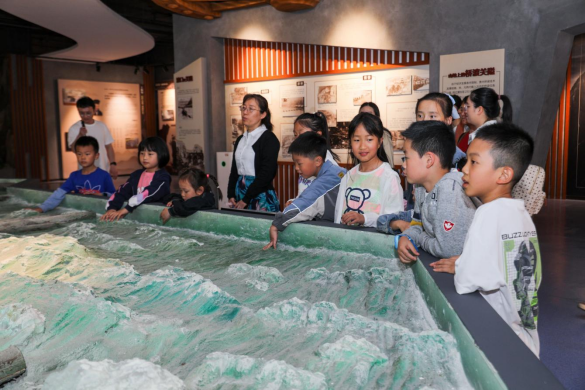 在贵州交通博物馆·教育馆,讲解员为小朋友们讲述“唐蒙修建夜郎道线路图”“织金奢香桥中的桥梁文化”“清水江航运的前世今生”的历史,展现在中国共产党领导下贵州交通建设取得的辉煌成就。