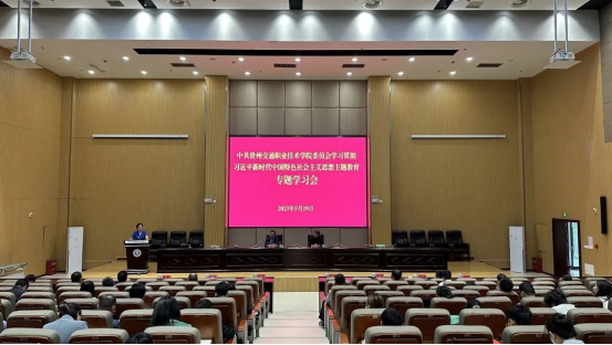 为深入学习贯彻习近平总书记重要讲话精神,把习近平新时代中国特色社会主义思想转化坚定理想、锤炼党性和指导实践、推动工作的强大力量。5月19日,贵州交通职业技术学院举行学习贯彻习近平新时代中国特色社会主义思想主题教育专题学习会。学院党委书记、学院学习贯彻习近平新时代中国特色社会主义思想主题教育领导小组组长张静主持会议,全国交通运输系统先进工作者、省交通宣传教育中心主任萧子静、贵州交通职业技术学院副院长詹黔江教授作理论宣讲。