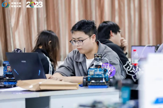 信息系“嵌入式技术应用开发”赛项获一等奖(图为团队成员犹涛在参加比赛)