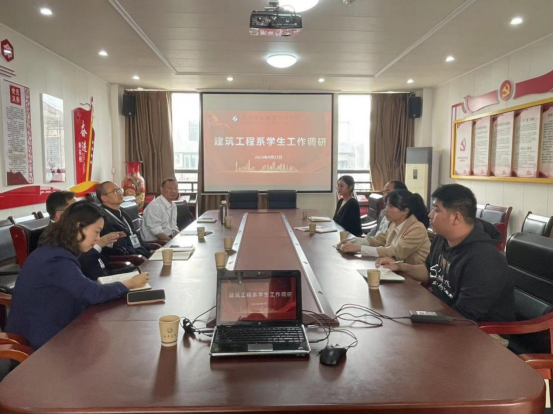 4月13日,学院副院长詹黔江带队到建工系调研学生工作,了解当前工作中存在的问题和困难。学生工作处处长徐鋆晟陪同调研。
