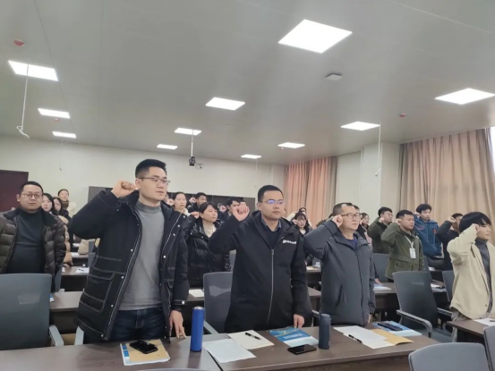 随后,全体新入职教师庄严宣誓,他们高举右拳,郑重承诺,他们将忠诚党的教育事业,履行教师神圣职责,修身立德,敬业爱生,严谨治学,勇于创新,为学生成长成才奉献全部的智慧和力量。