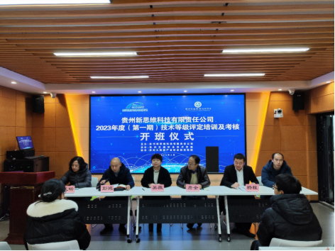 2月8日,贵州新思维科技有限责任公司2023年度(第一期)技术等级评定培训及考核开班仪式在智慧交通产教融合实训基地举行,学院党委委员、副院长吴薇,贵州中南交通科技有限公司党委委员、总工程师詹全,贵州新思维科技有限责任公司副总经理杨程、技术研发部经理邓建平,学院信息工程系主要领导以及全省各地市44名企业员工出席会议。