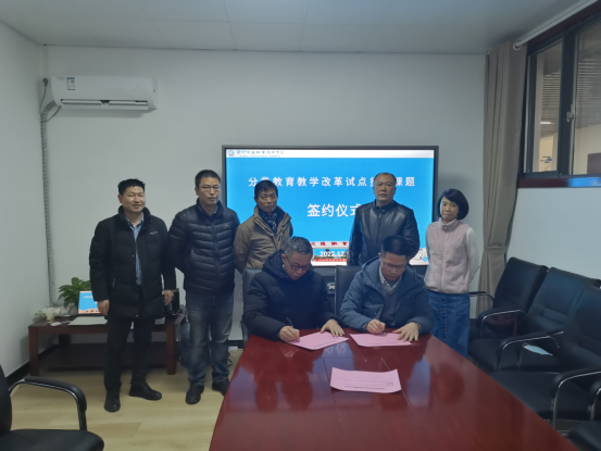 为深入推进学院《教育教学高质量发展综合改革方案》,提高人才培养质量、打造人才培养高地、展现职业教育特色,近日,教务处、科研处、管理工程系、轨道交通工程系共同举行了分类教育教学专业试点改革课题签约仪式。院长助理聂玉强教授、教务处处长雷建海、教学科研处处长张玉杰、管理工程系党总支书记安军、轨道交通工程系主任杨涛及课题组相关成员出席了本次签约仪式。