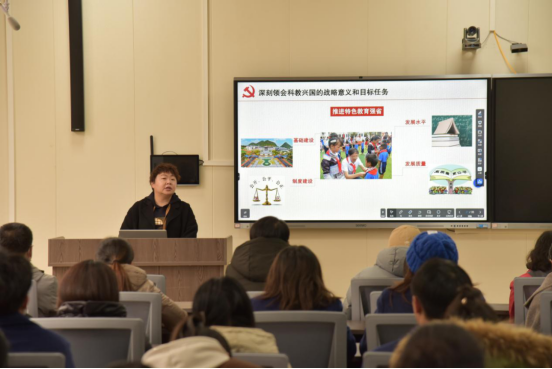 吴薇在宣讲中强调,党的二十大精神具有重要的政治意义、理论意义、历史意义、现实意义,我们可以通过数字“123456789”来学深悟透党的二十大精神实质,即:一个大会主题、一个中心任务,两个行、两步走,三件大事、三个务必,四个面对、四个方面,五个重大原则、五个必由之路,六个坚持,七个安全,八个具体目标任务,九个本质要求。我们要聚焦中国式现代化的新阐释、聚焦全面建设社会主义现代化国家的新谋划,深刻领会科教兴国的战略意义和目标任务。